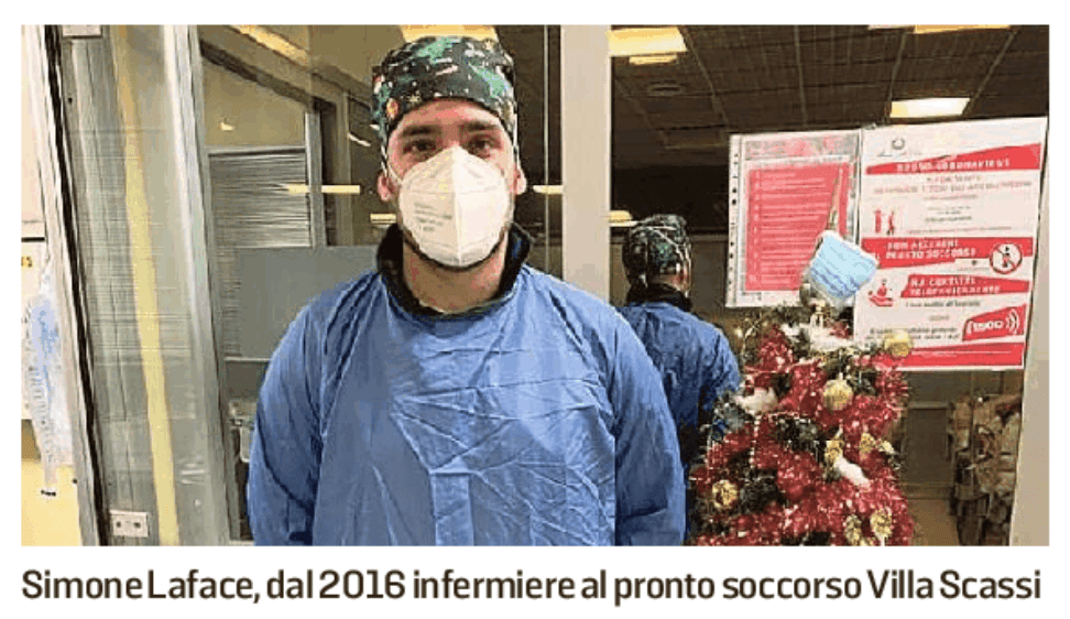 Simone Laface va con la mente a fine febbraio. All’ignoto, piombato addosso all’improvviso. «Ero appena tornato dalle ferie. È stato qualcosa di frenetico, inaspettato. Che mai avremmo potuto immaginare». 29 anni, infermiere al pronto soccorso dell’ospedale Villa Scassi, Laface è sposato con Sara Bonadio. In prima linea, anche lei, come infermiera, con e come il marito. Sempre a Villa Scassi.«Di quelle settimane ricordo l’afflusso continuo delle persone in ospedale. E l’essere davanti a un’emergenza che certo non di trova sui libri di scuola».Ha anche contratto il Covid 19, Laface: «Come asintomatico o quasi. Ho perso da subito gusto e olfatto ma, per il resto, sono sempre stato bene». la quarantena. Il ritorno in prima linea. «Sono stati mesi davvero provanti dal punto di vista fisico e mentale. E con un pizzico di amaro in bocca, anche: nonostante tutto l’impegno, il lavoro di squadra, l’aver usato tutte le nostre energie avevamo la sensazione di non aver fatto abbastanza». Le persone decedute. Ma anche quelle salvate. «Fra chi siamo riusciti a strappare al Covid 19 c’è chi, ancora oggi, passa per venirci a salutare da lontano in segno di gratitudine».L’isolarsi dai famigliari, per proteggerli: «Li ho visti al ritorno delle ferie, a metà febbraio e poi più nulla fino alla fine di aprile».L’essere marito e moglie nel vortice dell’emergenza. «Alla fine non staccavamo mai, parlandone anche a casa. È normale, amiamo quello che facciamo». Ora, il primo Natale dopo i mesi più duri: «Confidiamo nel vaccino, ora. In questo lungo periodo la forza, l’unione fra colleghi è stata fondamentale. E tutti siamo rimasti profondamente segnati. Abbiamo visto morire tante persone soffrendo, lontane dai propri affetti, dalla propria casa. È il dolore più profondo. Poi, però, c’è la gioia per le persone che ci vengono a salutare: quelli che vediamo in giro, tornati alla loro quotidianità. Le persone salvate. E questo è fondamentale: è vero che abbiamo perso tante persone ma è altrettanto vero che ne abbiamo strappate altrettanto dalla morte. E il loro saluto, il loro sorriso, è quello che ci fa forza ».