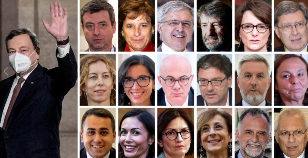 Il tecnico che per ora cammina sulle acque ha messo i tecnici dove voleva, cioè in quasi tutti i ruoli chiave, dall’Economia alla Giustizia. Così con le altre poltrone ha appagato la sete di posti dei partiti, con quattro caselle al M5S, tre a Pd, Forza Italia e Lega. Mentre LeU ha confermato Roberto Speranza alla Salute e Italia Viva si è dovuta accontentare di un solo ministero, per giunta senza portafoglio, quasi fosse un’invitata che bisognava tenere a tavola per educazione. Eccolo il governo misto di Mario Draghi, un po’ tecnico un po’ politico. Senza segretari di partito e con meno donne di quanto assicuravano le indiscrezioni molto imprecise, il 35 per cento circa. Inoltre, con gran parte dei nomi del Nord. Un gioco di equilibri dove il Movimento, la forza con più parlamentari ma anche con maggiori guai interni, porta a casa più posti di tutti.