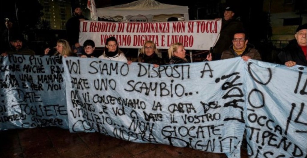 Napoli. Sotto una pioggia cattiva, sul panchetto inventato tra i palazzoni quasi litigano per andare al microfono e raccontare la paura di stare di nuovo peggio, cioè malissimo. “Mi chiamo Giuseppina, ho lavorato anche in Germania e parlo tre lingue. Non voglio stare su un divano, vorrei un lavoro: ma normale, non 500 euro per 12 ore di lavoro, senza che neppure lo scrivano sul contratto”. Eccoli i percettori del Reddito, eccoli davanti a Conte a Scampia, la periferia della serie tv Gomorra, eterno metro per i peggiori paragoni. “Qui di droga non ne vendono quasi più, c’è troppa polizia” si sbilancia il tassista che ti porta sul posto, facendoti capire che ti sta facendo un favore.