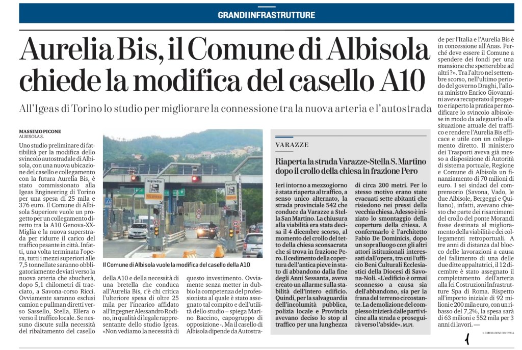 Uno studio preliminare di fattibilità per la modifica dello svincolo autostradale di Albisola, con una nuova ubicazione del casello e collegamento con la futura Aurelia Bis, è stato commissionato alla Igeas Engineering di Torino per una spesa di 25 mila e 376 euro. Il Comune di Albisola Superiore vuole un progetto per un collegamento diretto tra la A10 Genova-XXMiglia e la nuova superstrada per ridurre il carico del traffico pesante in città. Infatti, una volta terminata l’opera, tutti i mezzi superiori alle 7,5 tonnellate saranno obbligatoriamente deviati verso la nuova arteria che sbucherà, dopo 5,1 chilometri di tracciato, a Savona-corso Ricci. Ovviamente saranno esclusi camion e pullman diretti verso Sassello, Stella, Ellera o verso il traffico locale. Se nessuno discute sulla necessità del ribaltamento del casello della A10 e della necessità di una bretella che conduca all’Aurelia Bis, c’è chi critica l’ulteriore spesa di oltre 25 mila per l’incarico affidato all’ingegner Alessandro Rodino, in qualità di legale rappresentante dello studio Igeas. «Non vediamo la necessità di questo investimento. Ovviamente senza metter in dubbio la competenza del professionista al quale è stato assegnato tal compito e dell’utilità dello studio – spiega Marino Baccino, capogruppo di opposizione -. Ma il casello di Albisola dipende da Autostrade per l’Italia e l’Aurelia Bis è in concessione all’Anas. Perché deve essere il Comune a spendere dei fondi per una mansione che spetterebbe ad altri ?». Tra l’altro nel settembre scorso, nell’ultimo periodo del governo Draghi, l’allora ministro Enrico Giovannini aveva recuperato il progetto e riaperto la pratica per modificare lo svincolo albisolese in modo da adeguarlo alla situazione attuale del traffico e rendere l’Aurelia Bis efficace e utile con un collegamento diretto. Il ministero dei Trasporti aveva già messo a disposizione di Autorità di sistema portuale, Regione e Comune di Albisola un finanziamento di 70 milioni di euro. I sei sindaci del comprensorio (Savona, Vado, le due Albisole, Bergeggi e Quiliano), infatti, avevano chiesto che parte dei risarcimenti del crollo del ponte Morandi fosse destinata al miglioramento della viabilità e dei collegamenti retroportuali. A tre anni di distanza dal blocco delle lavorazioni a causa del fallimento di una delle due ditte appaltatrici, il 12 dicembre è stato assegnato il completamento dell’arteria alla Ici Costruzioni Infrastrutture Spa di Roma. Rispetto all’importo iniziale di 92 milioni e 200 mila euro, con un ribasso del 7,2%, la spesa sarà di 63 milioni e 552 mila per 3 anni di lavori. —