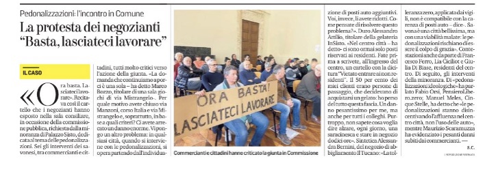 «Ora basta. Lasciateci lavorare». Recitava così il cartello che i negozianti hanno esposto nella sala consiliare, in occasione della commissione pubblica, richiesta dalla minoranza di Palazzo Sisto, dedicata al tema delle pedonalizzazioni. Sei gli interventi dei savonesi, tra commercianti e cittadini, tutti molto critici verso l’azione della giunta. «La domanda che continuiamo a porci è una sola – ha detto Marco Bozzo, titolare di una sala giochi di via Mistrangelo-. Per quale motivo avete chiuso via Manzoni, corso Italia e via Mistrangelo e, soprattutto, in base a quali criteri? Ci avete arrecato un danno enorme. Vi pongo un altro problema: in qualsiasi città, quando si interviene con le pedonalizzazioni, si opera partendo dall’individuazione di posti auto aggiuntivi. Voi, invece, li avete ridotti. Come pensate di risolvere questo problema?». Duro Alessandro Attilio, titolare della gelateria InSisto. «Nel centro città – ha detto- ci sono ormai solo posti riservati ai residenti. Fate prima a scrivete, all’ingresso del centro, un cartello con la dicitura “Vietato entrare ai non residenti”. Il 50 per cento dei miei clienti erano persone di passaggio, che decidevano di acquistarsi un gelato: ho perso del tutto questa fascia. Un danno pesantissimo per me, ma anche per tutti i colleghi. Purtroppo, non sapete cosa voglia dire alzare, ogni giorno, una saracinesca e stare in negozio dodici ore». Sintetica Alessandra Bernini, del negozio di abbigliamento Il Tucano: «La tolleranza zero, applicata dai vigili, non è compatibile con la carenza di posti auto – dice-. Savona è una città bellissima, ma con una viabilità malate: le pedonalizzazioni rischiano di essere il colpo di grazia». Contestazioni anche da parte di Francesco Ferro, Lia Ciciliot e Giulia Di Biase, residenti del centro. Di seguito, gli interventi della minoranza. Di «pedonalizzazioni ideologiche» ha parlato Fabio Orsi, PensieroLibero.zero; Manuel Meles, Cinque Stelle, ha detto che «le pedonalizzazioni stanno disincentivando l’affluenza nel centro città, non l’uso delle auto», mentre Maurizio Scaramuzza ha evidenziato i pesanti danni subiti dai commercianti. —
