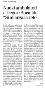 Si amplia la rete degli ambulatori di prossimità in Val Bormida. Dopo Altare, inaugurato all’inizio di febbraio, oggi, alle 15,30, verrà aperto quello di Bormida, a Pian Sottano, nell’edificio comunale che già ospita lo studio medico e la farmacia. Poi toccherà a Dego, il 14, nei locali di piazza Emilio Botta, e Giusvalla, il 21, in piazza Anselmi.