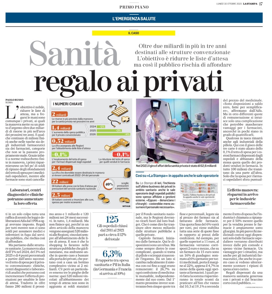 Regali dispensati da una manovra sanitaria generosa con i privati e dal braccino corto con il pubblico. —