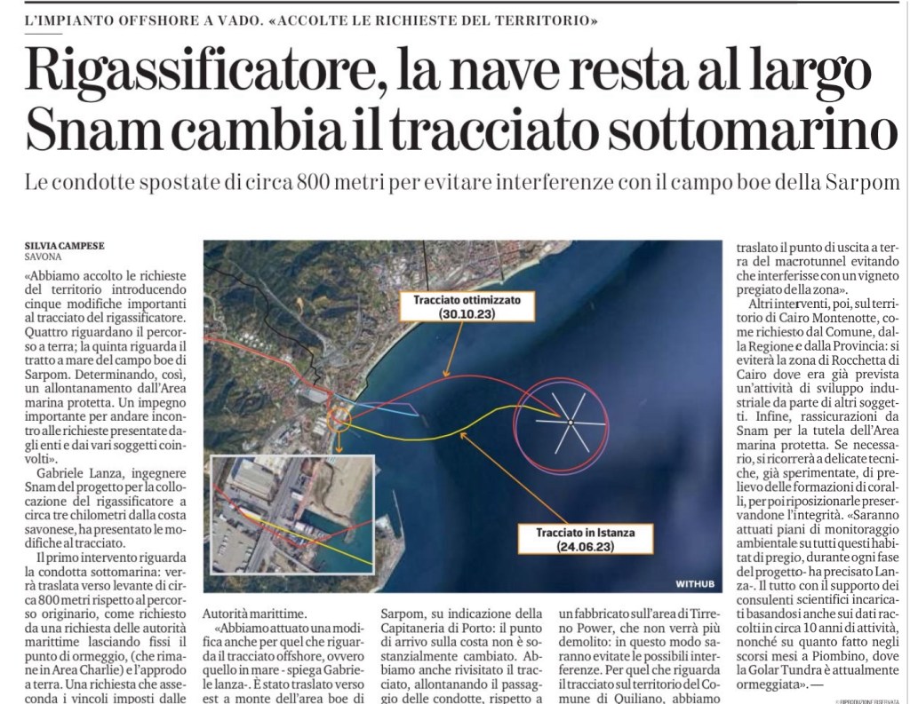 L’IMPIANTO OFFSHORE A VADO. «ACCOLTE LE RICHIESTE DEL TERRITORIO»