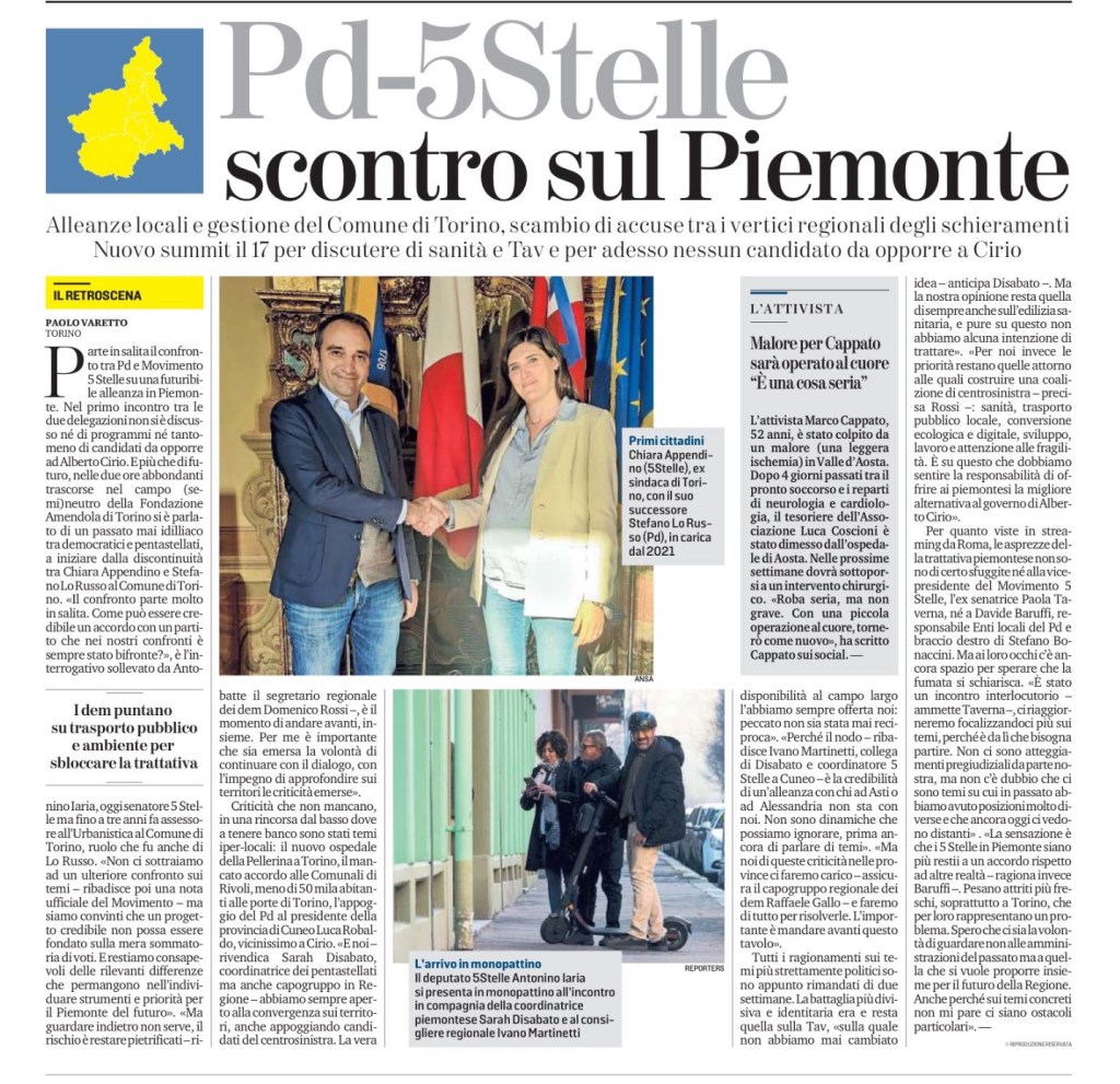 Parte in salita il confronto tra Pd e Movimento 5 Stelle su una futuribile alleanza in Piemonte. Nel primo incontro tra le due delegazioni non si è discusso né di programmi né tantomeno di candidati da opporre ad Alberto Cirio. E più che di futuro, nelle due ore abbondanti trascorse nel campo (semi)neutro della Fondazione Amendola di Torino si è parlato di un passato mai idilliaco tra democratici e pentastellati, a iniziare dalla discontinuità tra Chiara Appendino e Stefano Lo Russo al Comune di Torino. «Il confronto parte molto in salita. Come può essere credibile un accordo con un partito che nei nostri confronti è sempre stato bifronte?», è l’interrogativo sollevato da Antonino Iaria, oggi senatore 5 Stelle ma fino a tre anni fa assessore all’Urbanistica al Comune di Torino, ruolo che fu anche di Lo Russo. «Non ci sottraiamo ad un ulteriore confronto sui temi – ribadisce poi una nota ufficiale del Movimento – ma siamo convinti che un progetto credibile non possa essere fondato sulla mera sommatoria di voti. E restiamo consapevoli delle rilevanti differenze che permangono nell’individuare strumenti e priorità per il Piemonte del futuro». «Ma guardare indietro non serve, il rischio è restare pietrificati – ribatte il segretario regionale dei dem Domenico Rossi –, è il momento di andare avanti, insieme. Per me è importante che sia emersa la volontà di continuare con il dialogo, con l’impegno di approfondire sui territori le criticità emerse».