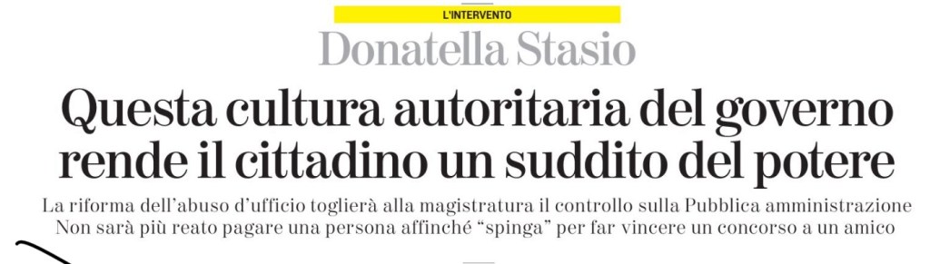 Anche un altro giurista, avvocato e professore di diritto penale, Massimo Donini, parla di “scelta autoritaria” e considera “una bufala giornalistica e politica” la narrazione secondo cui l’abuso d’ufficio riguarderebbe solo i sindaci e quindi sarebbe imposto dalla loro “paura della firma” anche per ridare slancio all’economia.