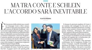 E dunque la giornata pugliese di Conte è un copione che ondeggia tra due poli, tra due modalità. Modalità identitaria: si richiamano a casa uomini e donne piazzati nella giunta Emiliano, all’insegna del «niente sconti, neppure alla nostra parte politica».
