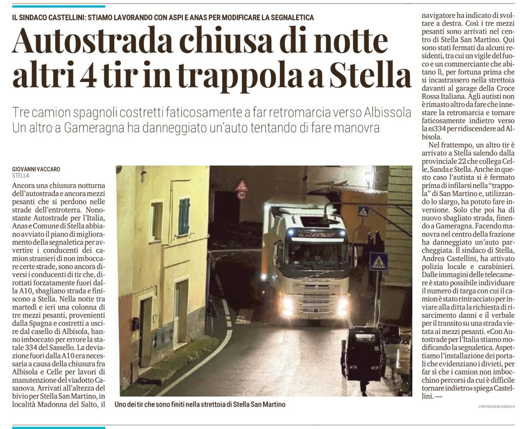 Autostrada chiusa di notte,altri 4 Tir in trappola a Stella