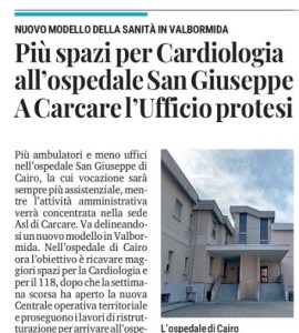 Più spazi per Cardiologia all’ospedale San Giuseppe A Carcare l’Ufficio protesi