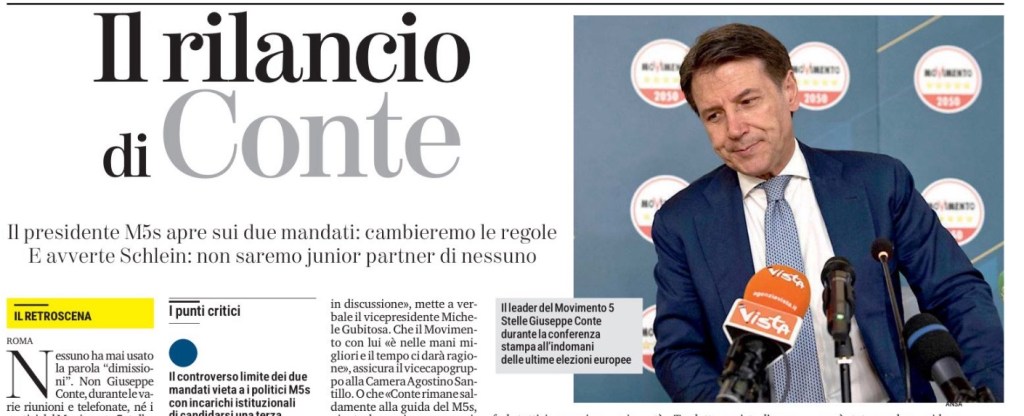 Nessuno ha mai usato la parola “dimissioni”. Non Giuseppe Conte, durante le varie riunioni e telefonate, né i vertici del Movimento 5 stelle, dai vicepresidenti ai capigruppo. Se qualcuno ci ha pensato, non ha avuto il coraggio di dichiararlo apertamente. Il leader M5s, dopo la pesante sconfitta alle Europee, si è limitato a dire di non voler fare «finta di niente» e dare l’impressione di essere «attaccato alla poltrona», quindi di essere pronto a tutto per rilanciare l’azione del Movimento. «Se pensate possa servire, potrei anche farmi da parte», il senso del ragionamento. Ma nessuno ha preso in considerazione questa soluzione. È bastata, però, la prima pagina di ieri del Fatto quotidiano, giornale vicino al M5s e di solito tutt’altro che ostile nei confronti dell’ex premier, per provocare un attacco di panico a più di un parlamentare. L’ipotesi di un passo indietro del presidente, messa nero su bianco, ha avuto l’effetto più prevedibile e, forse, sperato: ricompattare il Movimento intorno al suo leader. «Perché, se lui lascia, poi che facciamo? Ora non c’è nessuno in grado di prendere il suo posto», la considerazione più frequente.