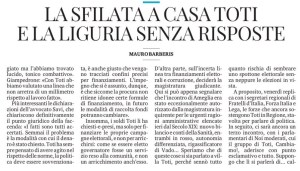 A proposito, venerdì replica con i segretari regionali di Fratelli d’Italia, Forza Italia e Lega, le forze che ancora sostengono Toti in Regione, stavolta per parlare di politica. In seguito, ci sarà ancora un terzo incontro, con i parlamentari di Noi moderati, cui il gruppo di Toti, Cambiamo!, aderisce con punto esclamativo e tutto. Suppongo che lì si parlerà di… calcio, avendo esaurito amministrazione e politica. E tutta questa movida, su e giù per la Liguria, per una sola ragione – giudicherà poi il lettore se sufficiente a giustificare il tran tran – su cui occorre riflettere in conclusione.