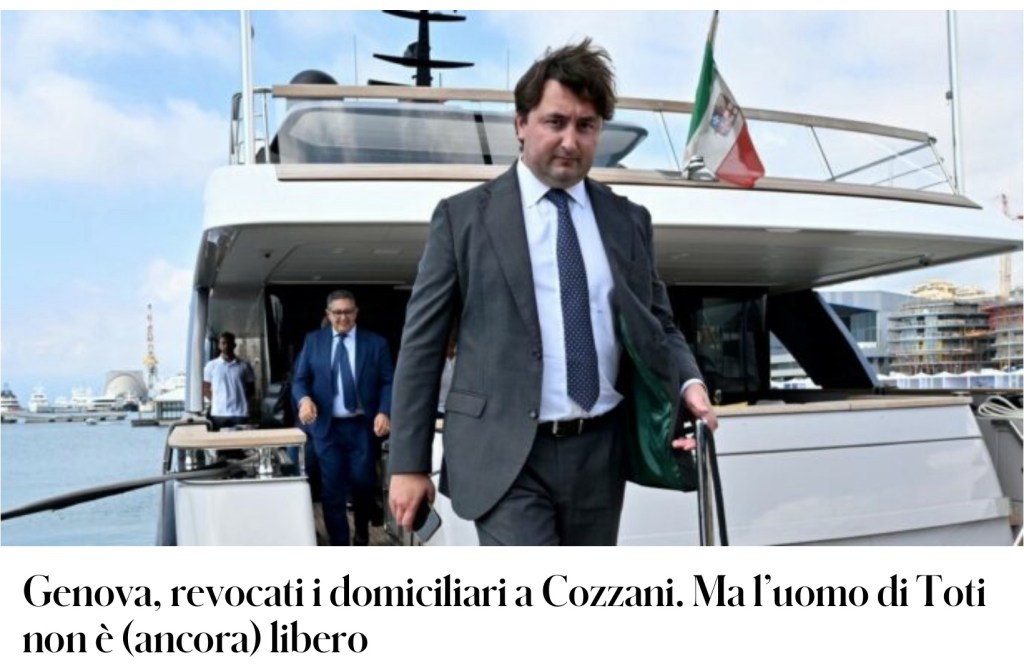 Il gip di Genova ha revocato gli arresti domiciliari a Matteo Cozzani, potente ex capo di gabinetto di Giovanni Toti, arrestato il 7 maggio scorso insieme al governatore ligure con le accuse di corruzione e corruzione elettorale (quest’ultima con aggravante mafiosa). La giudice Paola Faggioni ha accolto l’istanza della difesa convertendo la misura cautelare in quella, più lieve, dell’obbligo di dimora nel capoluogo regionale, con il divieto di uscire di casa dalle 19 alle 8 e l’obbligo di presentarsi alla polizia per tre volte alla settimana: prescrizioni, si legge nell’ordinanza, che “consentono di mantenere un adeguato controllo sul comportamento dell’indagato”. Secondo la Procura, durante la campagna elettorale per le Regionali del 2020 Cozzani – su mandato di Toti – ha promesso posti di lavoro in cambio di voti alla comunità originaria di Riesi (Caltanissetta) residente nel quartiere genovese di Certosa, rafforzando così il potere del clan Cammarata appartenente a Cosa nostra. Nel motivare la decisione, la gip attribuisce un peso decisivo alla scelta di Cozzani di dimettersi – già all’indomani degli arresti – dal ruolo di capo di gabinetto: “Pur a fronte della rilevante gravità delle condotte, il comportamento serbato dall’indagato (…) e, in particolare, le intervenute formali dimissioni dall’incarico costituiscono elementi che fanno ragionevolmente ritenere che le esigenze cautelari, sia pure ancora presenti, si siano ridimensionate”. Il braccio destro di Toti resterà però (almeno per ora) ai domiciliari, perché sottoposto a un’altra misura cautelare disposta dal gip di La Spezia nell’ambito di un procedimento parallelo per corruzione relativo ad appalti pubblici a Portovenere, comune di cui è stato sindaco fino al 2023. In particolare, secondo l’accusa, da primo cittadino si era impegnato “per agevolare in ogni modo la realizzazione di uno stabilimento balneare” di lusso su un’ex cava sull’isola Palmaria, paradiso naturale tutelato dall’Unesco, in cambio di varie utilità ricevute dagli imprenditori del mattone milanesi Raffaele e Mirko Paletti, tra cui numerose ospitate al “Grand Hotel” di loro proprietà per l’entourage di Toti. L’avvocato di Cozzani, Massimo Ceresa Gastaldo, presenterà però a breve istanza di revoca o di attenuazione anche della misura spezzina, che dopo la decisione genovese ha ottime probabilità di essere accolta.
