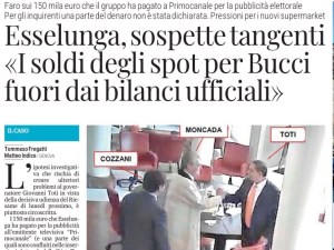 La circostanza, se confermata, potrebbe far rischiare a Esselunga una contestazione di responsabilità oggettiva in base alla cosiddetta «legge 231». Un aiuto all’analisi della documentazione è arrivato dal software acquisito dagli inquirenti presso la P.T.V. Programmazioni: è, quest’ultima, la società che edita Primocanale e il cartellone di Terrazza Martini”, e dovrebbe permettere di documentare gli spot pubblicitari andati in onda. I finanzieri in queste settimane li hanno analizzati per capire quanti passaggi pubblicitari siano stati concessi, in quale orario e in che giorno.