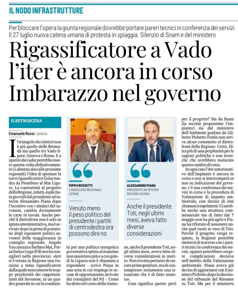Rigassificatore a vado l’iter e’ ancora in corso -imbarazzo del governo