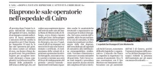 Riaprono le sale operatorie nell’ospedale di Cairo