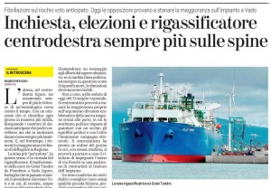 Un testo condiviso da tutti i dodici consiglieri (non senza qualche piccola frizione, perché la prospettiva del voto agita a tutte le latitudini) ma che ha come primo firmatario il consigliere regionale del Pd, Roberto Arboscello. Nel testo, dopo aver ricapitolato le tappe della vicenda, sono state inserite ampie citazioni di esponenti del centrodestra che si sono schierati contro il rigassificatore: come ad esempio il presidente ad interim Alessandro Piana, «che al termine dell’incontro con i rappresentanti dei comuni del savonese ha dichiarato che il parere politico della Regione Liguria è contrario». Ma nel testo si riportano anche le dichiarazioni di contrarietà di un altro assessore, Alessio Piana, e le parole adoperate con Il Secolo XIX sia dal forzista Angelo Vaccarezza secondo cui «il percorso per il trasferimento del rigassificatore a Savona-Vado sarebbe stato gestito con troppa arroganza», e dal capogruppo leghista Stefano Mai, che «mostra le stesse perplessità sul progetto espresse dalla Lega locale e regionale».