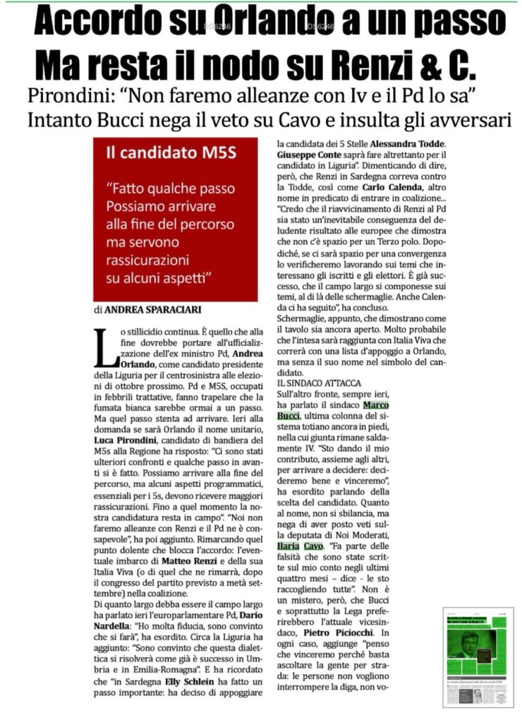 Accordo di Orlando a un passo..Pirondini“non faremo alleanze con Renzi e il pd ne è consapevole”