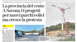 Liguria terra di vento e proteste. I crinali del Savonese fanno sempre più gola ai colossi dell’energia alternativa, che vorrebbero installare qui 14 nuovi parchi eolici. In provincia ne esistono già 16 (48 aerogeneratori in funzione) a fronte di 22 totali in Liguria. Ma, se tutti i nuovi parchi dovessero ottenere il via libera per la costruzione, il Savonese si ritroverebbe tra le mani 320,5 nuovi megawatt di potenza.