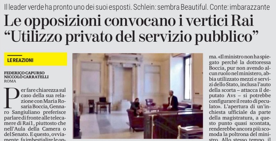 Per fare chiarezza sul caso della sua relazione con Maria Rosaria Boccia, Gennaro Sangiuliano preferisce parlare di fronte alle telecamere di Rai1, piuttosto che nell’Aula della Camera o del Senato. E questo, ovviamente, fa imbestialire le opposizioni, che ora annunciano esposti in procura, interrogazioni in Aula, audizioni in Vigilanza dei vertici Rai. Segno che la vicenda, per loro, è tutt’altro che conclusa.
