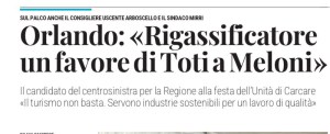 «La scelta del centrodestra di portare il rigassificatore nel Savonese aveva una sola motivazione: assicurare un favore al sindaco di Piombino, iscritto a Fratelli d’Italia. Se vinco le elezioni voglio rappresentare la mia regione, non risolvere i problemi di Giorgia Meloni».