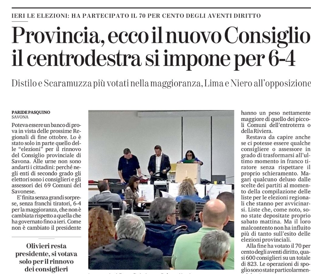Poteva essere un banco di prova in vista delle prossime Regionali di fine ottobre. Lo è stato solo in parte quello delle “elezioni” per il rinnovo del Consiglio provinciale di Savona. Alle urne non sono andarti i cittadini: perché negli enti di secondo grado gli elettori sono i consiglieri e gli assessori dei 69 Comuni del Savonese.