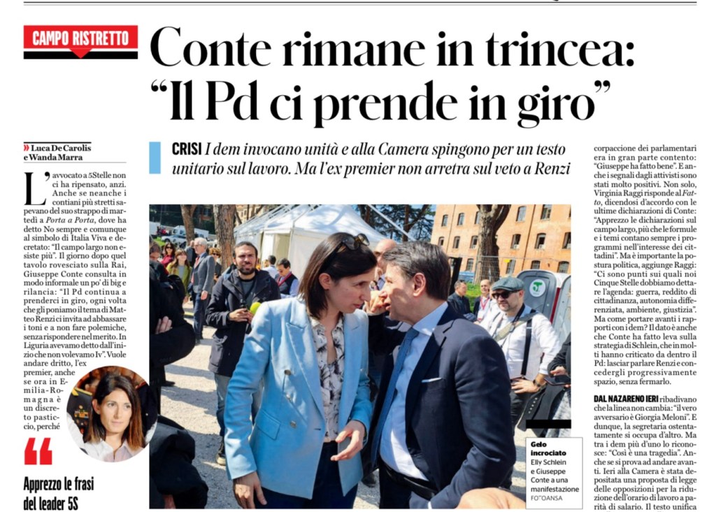 Comunque una differenza con la Liguria, dove Conte i renziani non li aveva voluti neanche in una lista senza stemma. Qui invece senza simbolo li avrebbe accettati. Ma gli strali davanti a Bruno Vespa hanno complicato tutto, e a questo punto l’espediente dei civici pare tramontato. Ergo, il Movimento potrebbe trovarsi anche costretto a correre da solo, rimanendo fuori dall’eventuale giunta dem. Un prezzo che l’avvocato sembra disposto a pagare, innanzitutto per motivi interni. Perché la prima miccia della sua intransigenza è la necessità di non sembrare “un cespuglio del Pd”, come spiegato ai suoi, a poche settimane da una delicatissima assemblea costituente. Un punto centrale, visto che in queste ore Conte ha notato che la linea dura sta pagando internamente. Ieri il corpaccione dei parlamentari era in gran parte contento: “Giuseppe ha fatto bene”. E anche i segnali dagli attivisti sono stati molto positivi. Non solo, Virginia Raggi risponde al Fatto, dicendosi d’accordo con le ultime dichiarazioni di Conte: “Apprezzo le dichiarazioni sul campo largo, più che le formule e i temi contano sempre i programmi nell’interesse dei cittadini”. Ma è importante la postura politica, aggiunge Raggi: “Ci sono punti sui quali noi Cinque Stelle dobbiamo dettare l’agenda: guerra, reddito di cittadinanza, autonomia differenziata, ambiente, giustizia”. Ma come portare avanti i rapporti con i dem? Il dato è anche che Conte ha fatto leva sulla strategia di Schlein, che in molti hanno criticato da dentro il Pd: lasciar parlare Renzi e concedergli progressivamente spazio, senza fermarlo.
