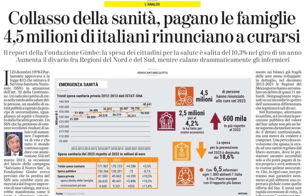 Perché se la Costituzione tutela il diritto alla salute di tutti, la sanità deve essere per tutti. —