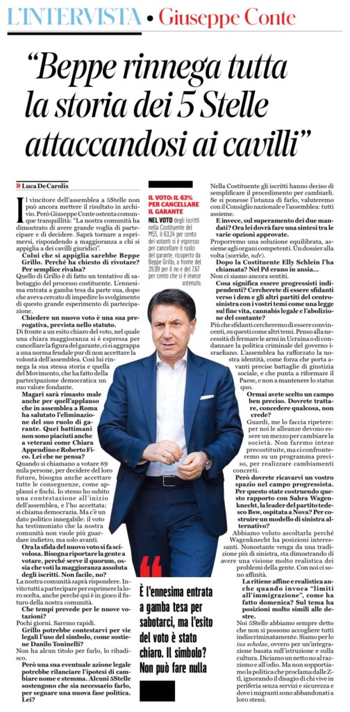 Di fronte a un esito chiaro del voto, nel quale una chiara maggioranza si è espressa per cancellare la figura del garante, ci si aggrappa a una norma feudale pur di non accettare la volontà dell’assemblea. Così lui rinnega la sua stessa storia e quella del Movimento, che ha fatto della partecipazione democratica un suo valore fondante.