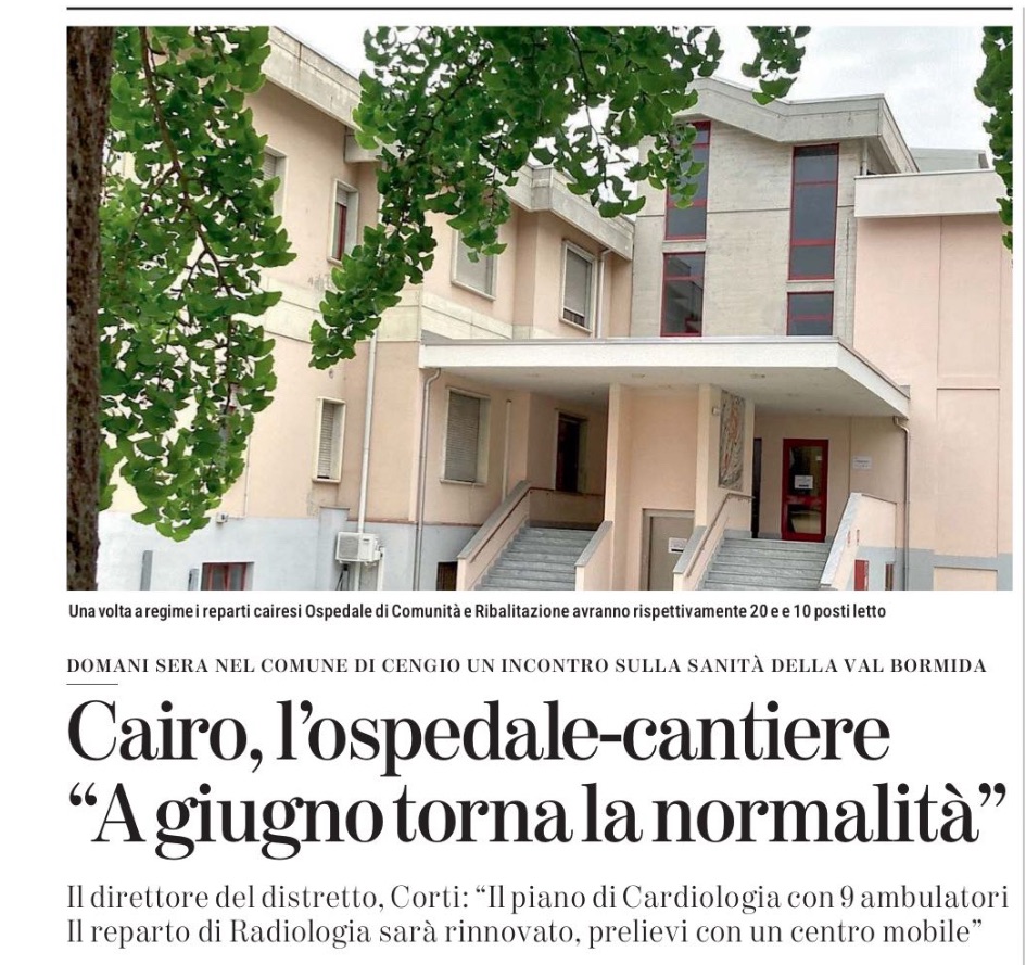 Ospedale di Cairo, entro giugno si ritorna alla normalità per i reparti di Riabilitazione e Ospedale di Comunità.