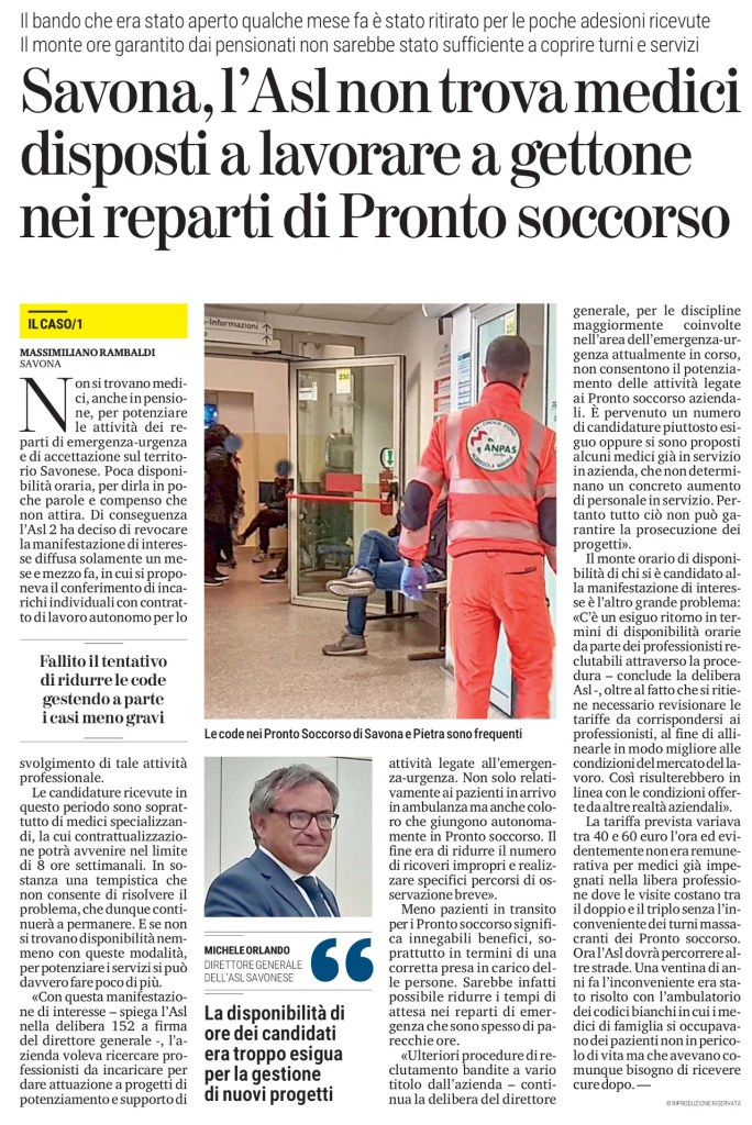 Pochi mesi fa, il dottor Paolo Cremonesi, presidente ligure del Simeu, la Società scientifica di Pronto soccorso, aveva sottolineato che le carenze di personale oscillerebbero «vanno dal 25 al oltre il 50%; in particolare sulle Riviera dove ci si rivolge alle cooperative, è il caso dell’ospedale di Sanremo o nel Savonese per Pietra Ligure».