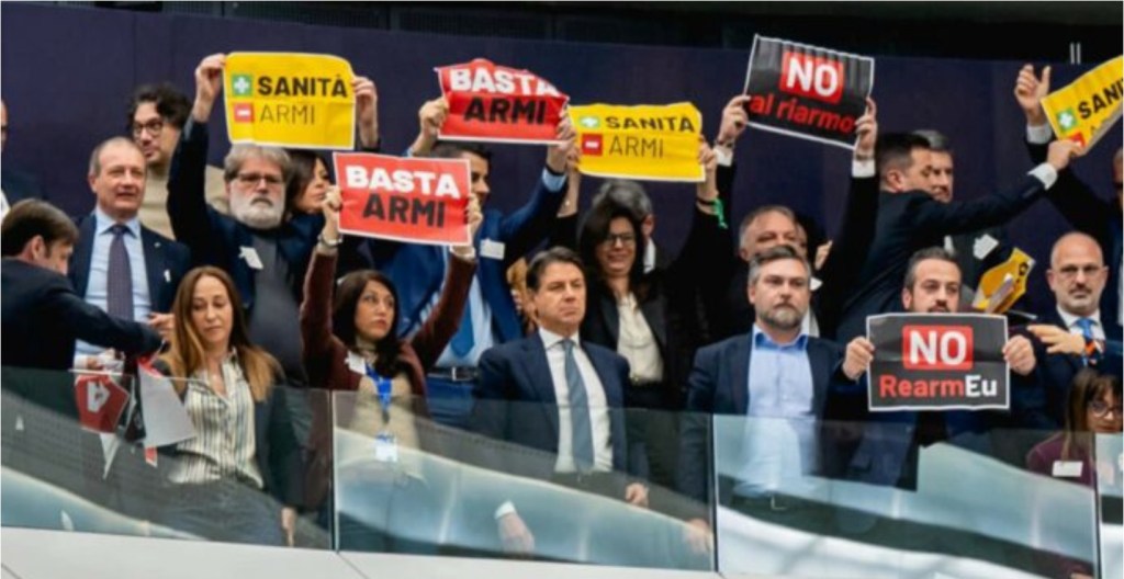 Sorrisi, saluti, Costa che chiosa: “È il bello della democrazia”. E per Conte va benissimo così. Ha ottenuto il palcoscenico internazionale per ostentare che lui è l’anti Von der Leyen, libero di fare muro al suo piano per il riarmo da 800 miliardi, mentre Elly Schlein dicendo no ha trasformato il suo Pd in una santabarbara. “Siamo in tutti i tg”, celebrano i 5Stelle dell’esodo in Ue, dove assieme agli eletti di oggi ci sono i veterani Paola Taverna e Vito Crimi. Soprattutto, rivendicano “la fila di deputati di altri gruppi” che sono andati a salutare Conte, mentre con i suoi esponeva gli striscioni della pace e i cartelli contro le armi appena fuori dell’aula (photo action, la chiamano). I gruppi, tutti, li aveva pre-avvertiti con apposita email il capo delegazione, Pasquale Tridico. E si sono presentati in diversi: da Fabio De Masi di Bsw, il partito della “sodale tedesca” Sahra Wagenknecht, a Estrella Galan di Sumar, il partito rosso della vicepresidente spagnola Yolanda Diaz, per arrivare ai comunisti portoghesi e a partiti slovacchi, belgi, ciprioti e bulgari. È ciò che l’ex premier cercava, nel giorno anche del flash-mob davanti al Parlamento Ue. In aula, è Danilo Della Valle a depositare sul banco vuoto di Von der Leyen la bandiera della Ue cucita assieme a quella della pace. La stessa che mostreranno nel Parlamento italiano i due 5Stelle rimasti a presidiare le Camere, Chiara Appendino e Stefano Patuanelli. Ma il martedì europeo del M5S suona anche come una sfida al Pd, nonostante in tanti giurino che “non è per questo che ci siamo mossi”. In collegamento con l’Aria che tira, Conte è affabile verso la segretaria dem: “Non è il giorno delle polemiche, ma della chiarezza delle posizioni. Schlein è stata chiara per un chiaro no al riarmo: ne prendiamo atto”. Ma la missione europea del Movimento non può lasciare indifferente il Pd dilaniato dal tema armi. “Il capo delegazione Nicola Zingaretti non ha gradito” sostengono diversi 5Stelle. La certezza è l’iper-atlantista Pina Picierno, dritta contro il M5S: “È molto facile lucrare consenso elettorale, questo è circo mediatico”.