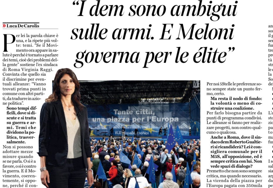 Per lei la parola chiave è una, e la ripete più volte: temi. “Se il Movimento ora appare in salute è perché è tornato a parlare dei temi, cioè dei problemi della gente” sostiene l’ex sindaca di Roma Virginia Raggi. Convinta che quello sia il discrimine per eventuali alleanze: “Vanno trovati prima punti in comune con altri partiti, da tradurre in azione politica”.