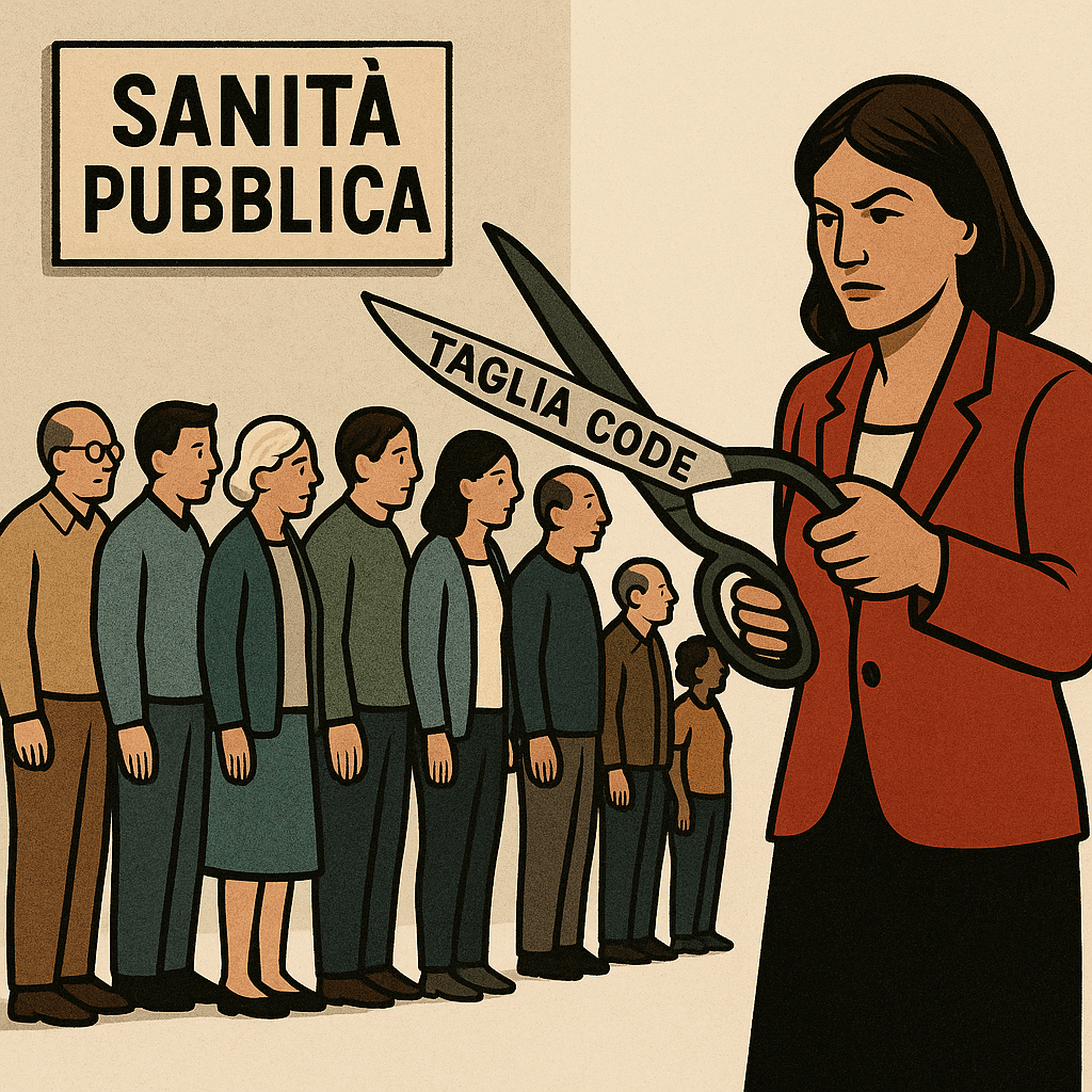 Qualcuno ci aveva anche creduto, con quel nome così assertivo: “Taglia code”. Poco importa se l’idea che basti un decreto per risolvere un problema di sottofinanziamento cronico e strutturale sconfina nel pensiero magico o, più facilmente, nella propaganda: d’altronde la legge 107 del 2024 che “introduce misure urgenti per ridurre i tempi di attesa delle prestazioni sanitarie” è stata varata tre giorni prima delle elezioni europee mica per caso. Un anno dopo, dei sei decreti attuativi che avrebbero dovuto consentire di intervenire sullo scempio di lungaggini che arrivano a 12 mesi per una semplice Tac, talmente tanti da far rinunciare il 35% della popolazione alle cure del Servizio sanitario nazionale, ne sono stati varati soltanto due. E a beneficiare della norma sono stati, come ampiamente prevedibile e denunciato a più riprese dalle opposizioni, solo le strutture private che, favore dopo favore, vanno via via sostituendosi al pubblico: quando il sottosegretario alla Sanità è azionista di una catena di cliniche che si fa pubblicità proponendosi come alternativa alla lentezza degli ospedali, d’altra parte, c’è poco di cui stupirsi. Ben venga allora, paradossalmente, lo scontro tra Regioni e ministero che, nelle ultime settimane, ha riportato a galla le promesse mancate e i problemi realissimi del Servizio Sanitario Nazionale (Ssn), al cui ridimensionamento, se non smantellamento, il governo Meloni – quello “dalla parte delle persone” – sta attivamente lavorando sottotraccia. Se amministrazione centrale e locali discutono di chi deve avere il potere di controllare l’effettivo rispetto delle norme per ridurre i tempi di attesa, riattivando loro malgrado la discussione sul diritto universale della salute, previsto nel dettato costituzionale ed esplicitamente ribadito dalla sentenza della Consulta che ha fatto a pezzi il disegno di legge dell’Autonomia differenziata (195/2024), è fondamentale focalizzarsi sui motivi di tali code, e sui percorsi scelti per tagliarle. Si scopre così una verità semplice: la sanità pubblica declina perché non riceve le risorse necessarie al suo funzionamento. È la stessa Corte a segnalarlo, quando scrive: “La determinazione dei Livelli essenziali di prestazioni origina il dovere dello Stato di garantirne il finanziamento: è la garanzia dei diritti incomprimibili a incidere sul bilancio, e non l’equilibrio di questo a condizionarne la doverosa erogazione”. Per verificare quanto siamo lontani da questa condizione basta annotare la progressiva riduzione della percentuale del Pil che destiniamo alla sanità pubblica: dal 6,8% del 2014 al 6% del 2025, fino al 5,6% previsto per il 2030. Anche laddove i soldi ci sono, per esempio nella “missione Salute” del Pnrr, non si spendono adeguatamente. Al dicembre 2024, con soli 16 mesi ancora davanti per ultimare il famoso Piano di cui si sono ormai perse le tracce, il sistema nazionale di monitoraggio Regis segnalava che sulle fondamentali “Case della comunità”, primo presidio e perno dell’assistenza territoriale, è stato speso meno di un decimo dei fondi disponibili. Alla stessa data risultavano completati e collaudati solo 25 progetti, mentre ben 885 (62,6%) presentavano almeno uno step in ritardo. A fronte di questi numeri, i battibecchi su responsabilità e attribuzione di controllo si rivelano per quello che sono: fumo negli occhi per coprire il disastro, l’inerzia e il progetto non dichiarato di un Servizio sanitario pubblico “residuale”, che si occupa “solo di ciò che non interessa il mercato privato o protegge solo i rischi non assicurabili”. Così recita l’appello “Non possiamo restare in silenzio. La società civile in difesa della sanità pubblica”, promosso da Associazione Salute Diritto Fondamentale, Laboratorio Salute e Sanità – LABOSS, Salute internazionale, Cittadinanzattiva, Forum Disuguaglianze e Diversità e molte altre realtà. Leggerlo è un ottimo modo per vederci chiaro, e conoscere gli obiettivi per cui dare battaglia.
