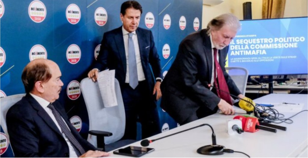 Eppure secondo i 5Stelle, le destre in Antimafia la dipingono come “una verità già accertata”, pur di portare avanti il loro obiettivo: “Portare sul banco degli accusati la magistratura che osò l’inosabile, procedendo contro una schiera di intoccabili, il gotha del potere”, come sostiene ancora Scarpinato. E siamo al nodo della vicenda, alla trattativa Stato-mafia e al relativo processo, da cui l’ex comandante del Ros Mori e De Donno uscirono assolti. Per i 5Stelle, la loro versione “è frutto della volontà di vendetta nei confronti dei magistrati che li hanno processati”, quindi anche contro Scarpinato. “In commissione hanno dipinto lui e De Donno come vittime dei giudici che presero lucciole per lanterne – insiste il senatore – ma le stragi sono ancora tra noi, e non furono solo di mafia”. Accanto, Conte.