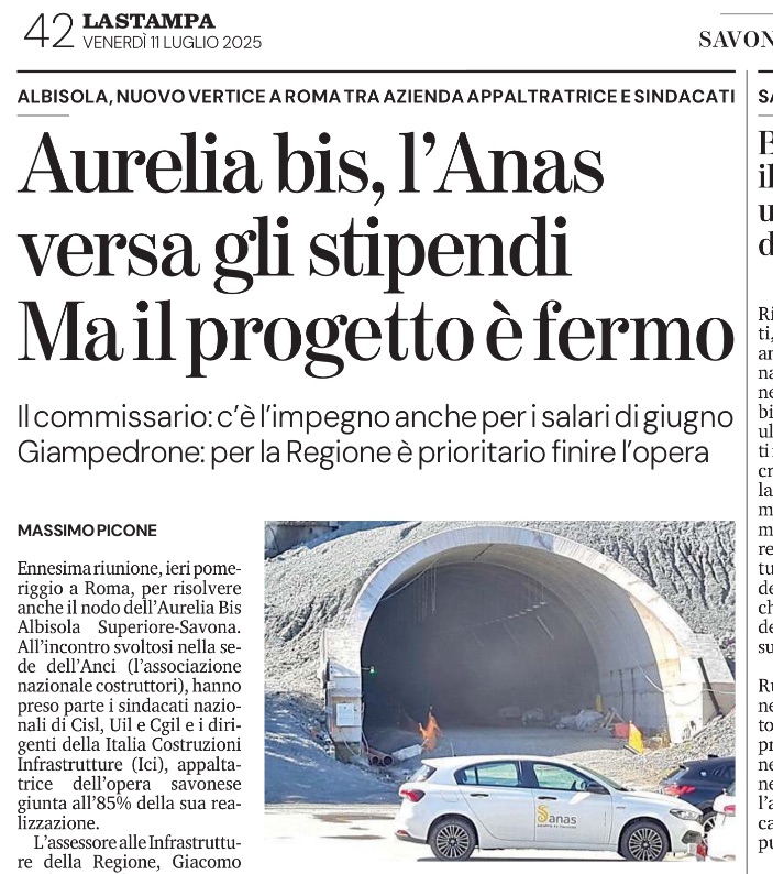 L’assessore alle Infrastrutture della Regione, Giacomo Raul Giampedrone, commenta: «Dopo l’impegno mantenuto per il pagamento degli stipendi di marzo, aprile e maggio da parte dell’Anas (concessionaria della superstrada, ndr.) , il commissario Matteo Castiglioni ha garantito anche il versamento alle maestranze degli stipendi di giugno, attraverso gli interventi sostitutivi adottati dall’azienda pure per pagare fornitori, subappaltatori ed enti previdenziali. È un elemento significativo che evidenzia la ferma volontà di Regione, della struttura commissariale e del ministero ai Trasporti di realizzare quest’opera, prioritaria per la Liguria e pienamente condivisa a livello locale e nazionale». Sulla crisi economica che attraversa Ici, che conta anche su numerosi maxi appalti in tutta Italia, Giampedrone aggiunge: «Il nostro auspicio rimane che le criticità finanziarie di Ici possano risolversi rapidamente, attraverso al lavoro incessante sia della struttura commissariale che del ministero, anche rispetto al possibile interessamento di altri gruppi imprenditoriali ad acquisire il portafoglio lavori dell’impresa. L’obiettivo condiviso – conclude – è di portare avanti il cantiere, evitando di dover ripartire da zero con una nuova gara d’appalto». Andrea Tafaria, segretario regionale Cisl-Felsa, aggiunge: «La notizia positiva è che i salari sono stati saldati attraverso l’intervento dell’Anas che se ne è fatta carico, come avevano promesso. Da parte della Ici, c’è stato l’ennesimo rinvio di una decisione che, giorno dopo giorno, si fa sempre più pressante. In sostanza, dall’impresa appaltatrice hanno riferito che entro il prossimo 27 luglio dovrebbe essere attuato il risanamento aziendale, altrimenti chiederanno al Tribunale di Roma che venga loro concessa una proroga. Ma intanto i lavori non andranno avanti e si continua a perdere del tempo». —