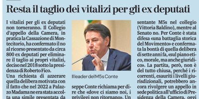 RESPINTO IL RICORSO DI CENTINAIA DI EX ONOREVOLI. CONTE: NOSTRA VITTORIA