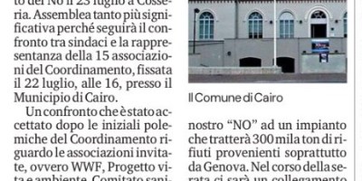 Ambiente e Territorio, Cosseria, Inceneritore, Politica GLI INCONTRI PRIMA A CAIRO E POI A COSSERIA 18/07/2025
