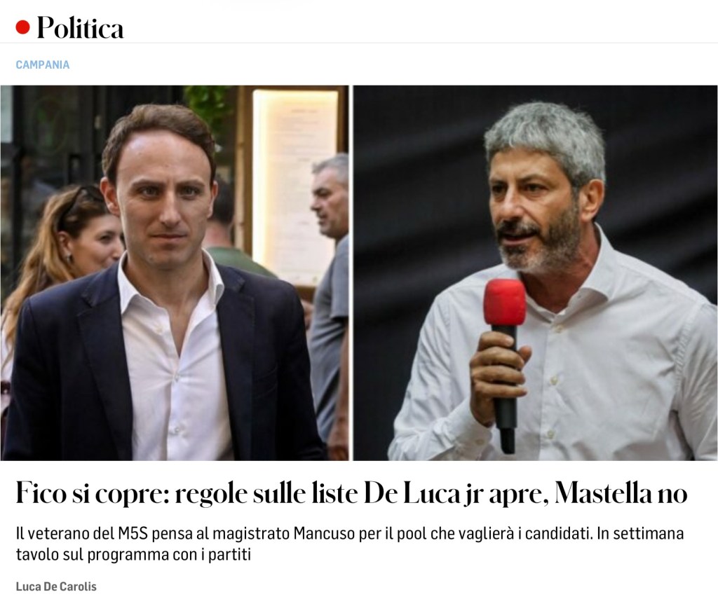 Come a dire che il rischio di avere alla guida della Campania un presidente politicamente zoppo è concreto, e va scongiurato. Forse è per questo, è il sottotesto, che lei stessa ha voluto come segretario il figlio di De Luca (“quella del congresso unitario è una proposta nostra”). D’altronde lo stesso De Luca junior sembra confermare lo spirito dell’operazione: “Non ci sono state pregiudiziali nei confronti della candidatura di Fico e nelle scorse settimane è stato fatto un lavoro importante”.