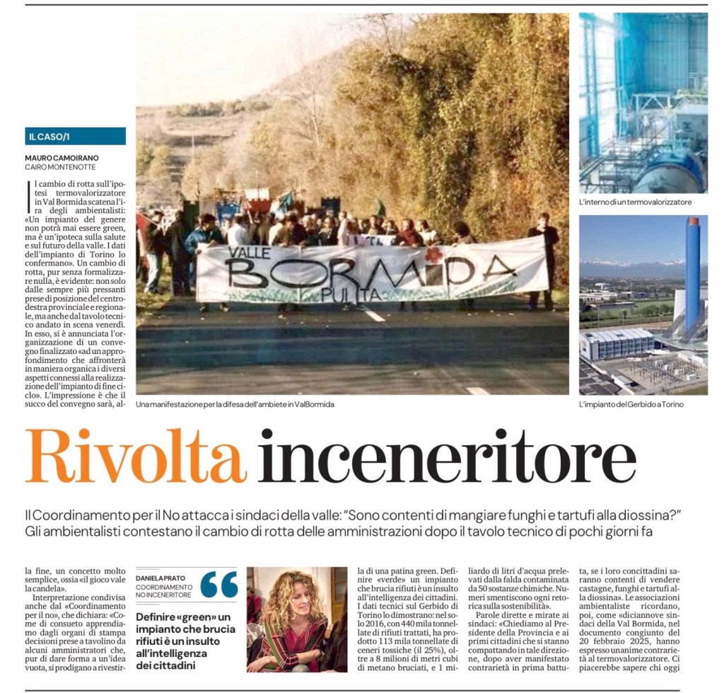 Parole dirette e mirate ai sindaci: «Chiediamo al Presidente della Provincia e ai primi cittadini che si stanno compattando in tale direzione, dopo aver manifestato contrarietà in prima battuta, se i loro concittadini saranno contenti di vendere castagne, funghi e tartufi alla diossina». Le associazioni ambientaliste ricordano, poi, come «diciannove sindaci della Val Bormida, nel documento congiunto del 20 febbraio 2025, hanno espresso unanime contrarietà al termovalorizzatore. Ci piacerebbe sapere chi oggi ha cambiato idea, rinnegando quella firma e tradendo l’impegno preso davanti ai cittadini».