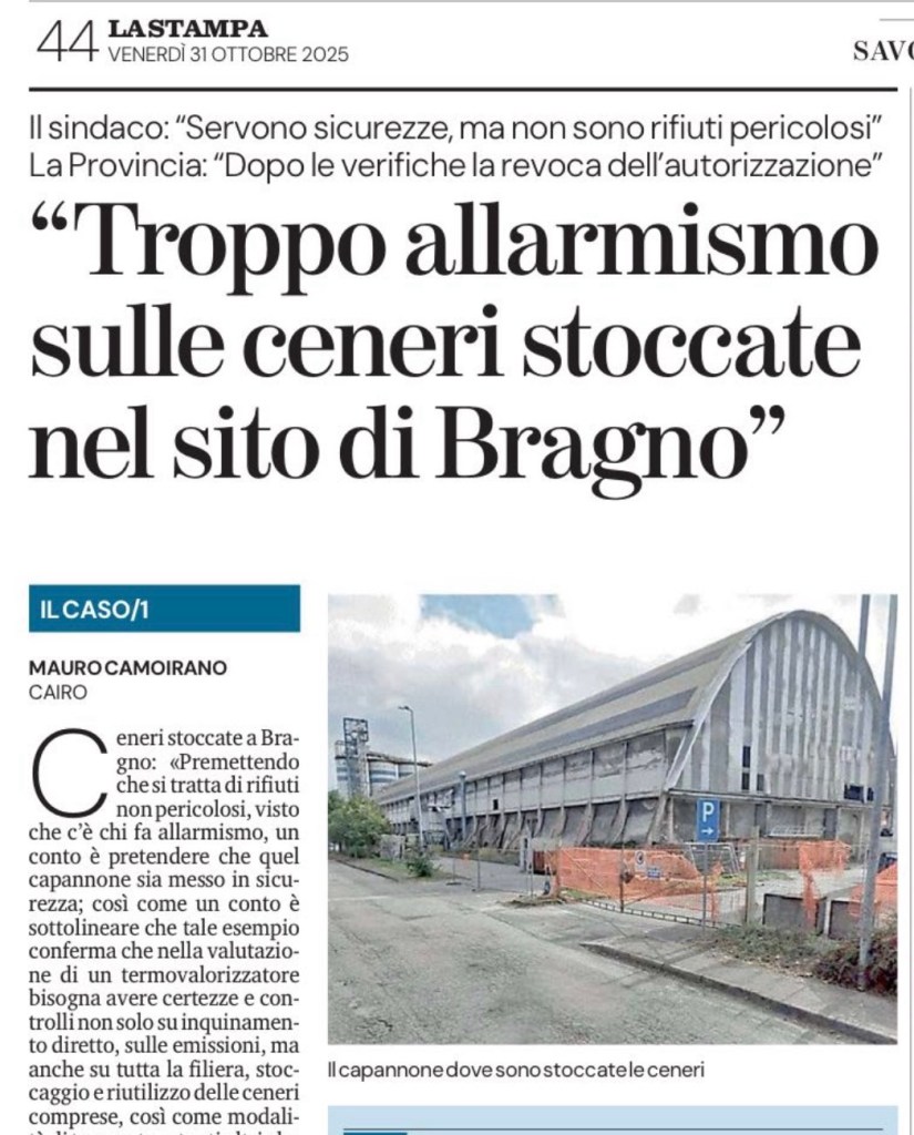 “Troppo allarmismo sulle ceneri stoccate nel sito di Bragno”