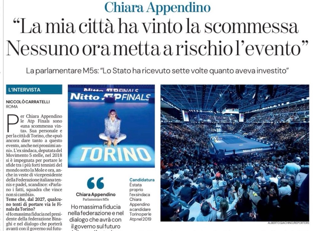 Per Chiara Appendino le Atp Finals sono «una scommessa vinta». Sua personale e per la città di Torino, che «può ancora dare tanto a questo evento, anche nei prossimi anni». L’ex sindaca, deputata del Movimento 5 stelle, nel 2018 si è impegnata per portare le sfide tra i più forti tennisti del mondo sotto la Mole e ora, anche in veste di vicepresidente della Federazione italiana tennis e padel, scandisce: «Parlano i fatti, squadra che vince non si cambia».