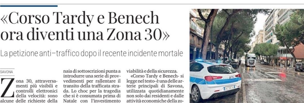 «Corso Tardy e Benech- si legge nel testo- è una delle arterie principali di Savona, utilizzata quotidianamente non solo dai residenti e dalle attività economiche della zona, ma anche da flussi consistenti di veicoli diretti o provenienti dall’area portuale. La conformazione della strada, la presenza di numerosi esercizi commerciali, fermate bus, attraversamenti pedonali e un forte traffico veicolare rendono il tratto particolarmente esposto a incidenti, come purtroppo dimostrato anche dall’incidente mortale che ha scosso l’intera comunità».