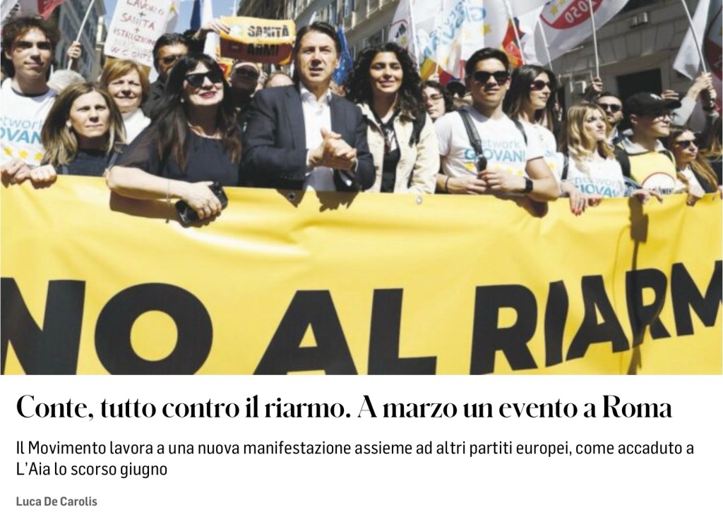Ripartirà da dove ha concluso, l’avvocato. Contro il riarmo. Una battaglia ormai identitaria per i Cinque Stelle, nonché il tema di un emendamento e di un ordine del giorno alla manovra, illustrati alla Camera nella maratona notturna del 29 dicembre proprio da lui, da Giuseppe Conte, con le destre a fare spallucce e il Pd che si è astenuto. Per giunta, con il dem Piero Fassino a criticare dal microfono l’ex premier – “così si fa credere agli italiani che ci stiamo predisponendo a fare la guerra” – per il disappunto ostentato del Movimento. Schermaglie che non incidono su una certezza, ossia che nel 2026 il M5S (ri)punterà innanzitutto sul no all’aumento delle spese militari, in Italia come in Europa.