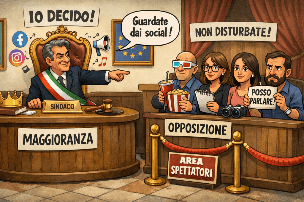 Tradotto: la minoranza come spettatore. Un’impostazione che mostra una difficoltà evidente nel comprendere il ruolo democratico dell’opposizione: non un intralcio, non un fastidio da tollerare, ma un organo di garanzia e controllo dentro l’istituzione.